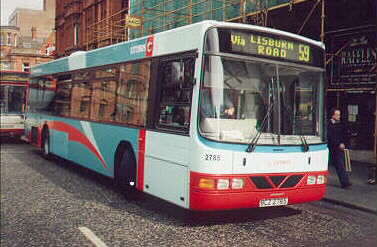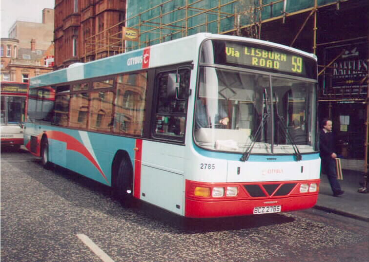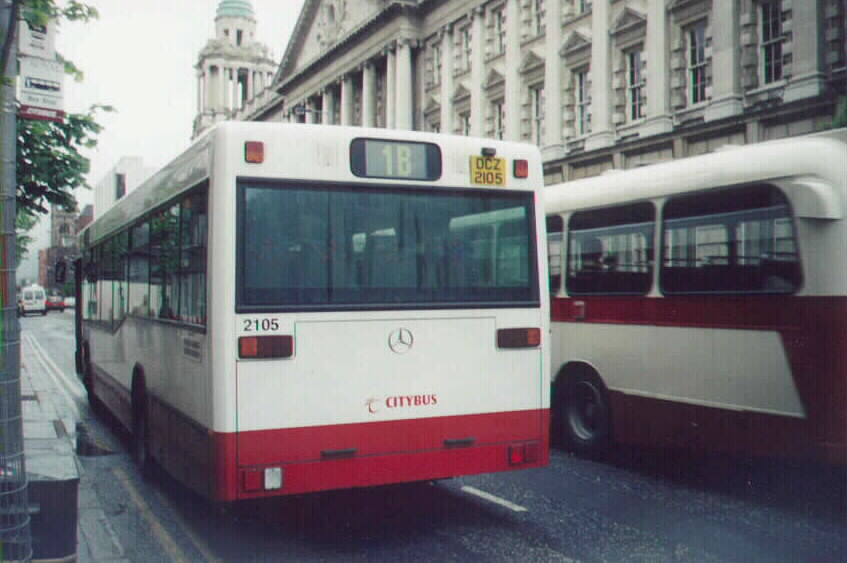 The REs were numbered from 2003 to 2600, although those at the start and end of this range belonged to Ulsterbus, along with a substantial number in between. The REs left in service with Citybus today are from about 2476 to 2583, with plenty of gaps in between where buses have been maliciously destroyed over the years. None of these are very much at all more than 16½ years old, and most of the older ones have been scrapped, with some transferred to Ulsterbus where they are still in service. Ulsterbus have kept their REs much longer and several are now 20 years old. There are some comments about Bristol REs on the Ulsterbus Vehicle Types page