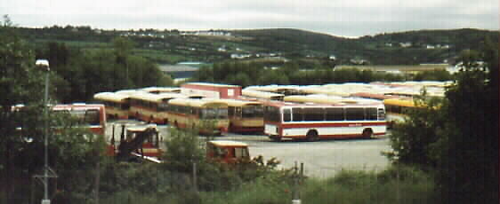 Since the start of the company its main headquarters was in Pennyburn in Derry. It had a bus depot there until November 1997, but this then closed and the buses and lorries are now housed on the same site in the Springtown Industrial Estate, further out the Buncrana road in Derry. I think the main office is in Foyle Street Bus Station, and the company now calls the Pennyburn address its 'registered office'. There is a large modern depot in Letterkenny (behind Letterkenny Shopping Centre). In front of this is a big field where lots of old dead withdrawn buses are parked. Recently a lot of the old buses were being scrapped, but I think there has been a drop in the price of scrap metal and so a lot of the old buses will be staying on for a bit longer. Some photographs of Letterkenny depot are shown below.